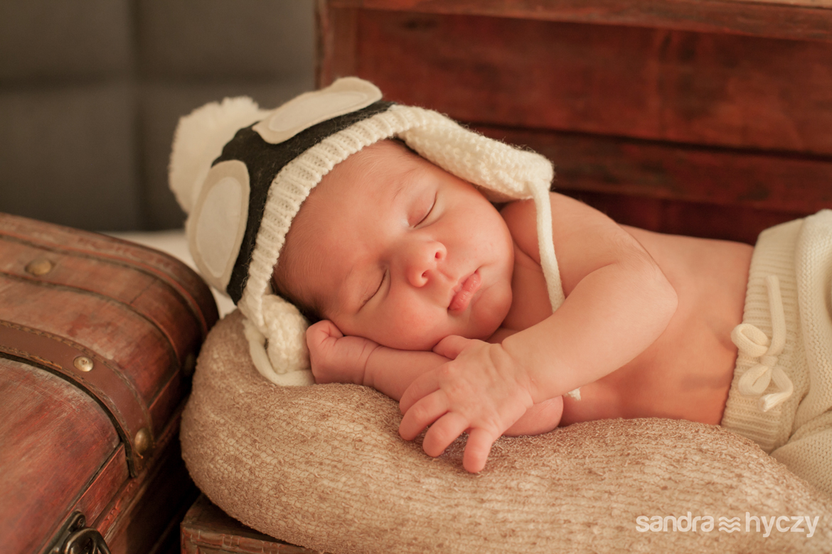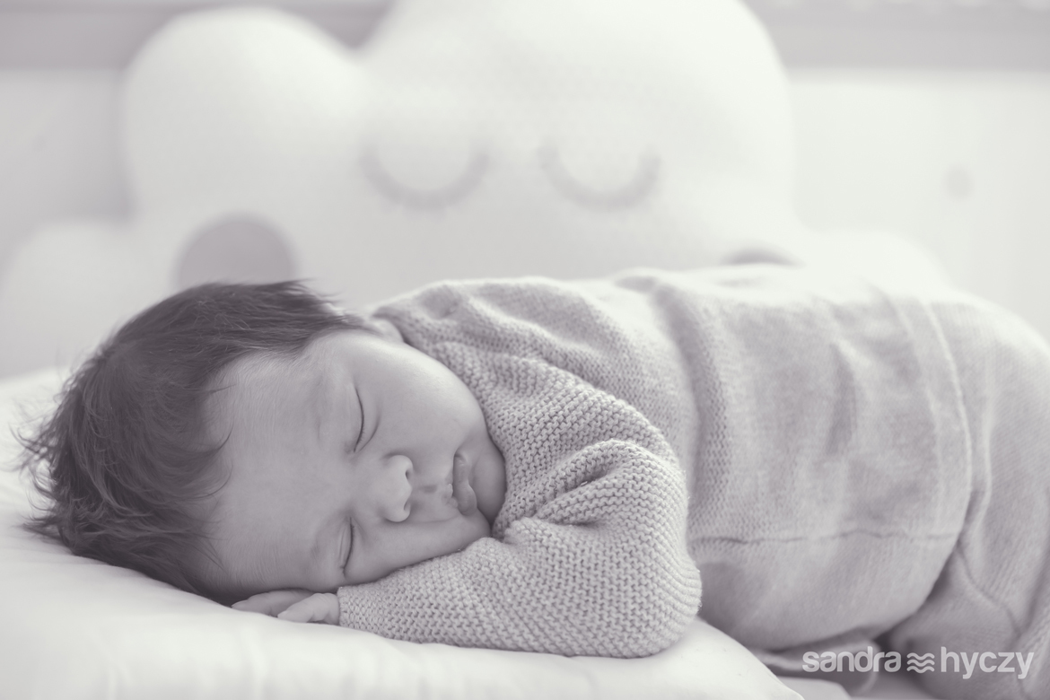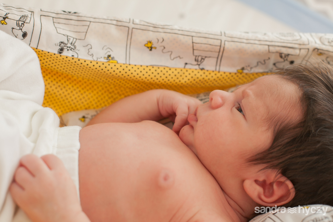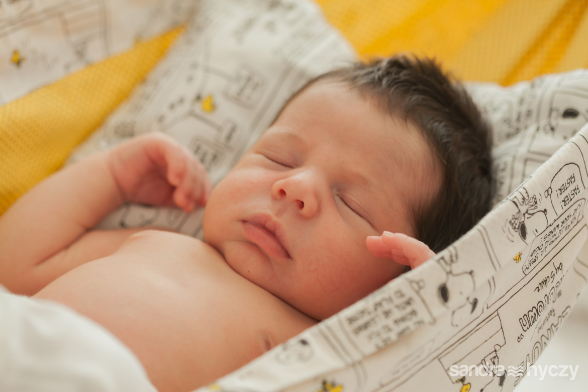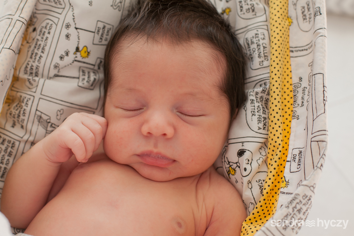 Quando iniciei a sua sessão Newborn, ele estava assim : relaxado - após um mamá gostoso, tirando uma bela soneca.