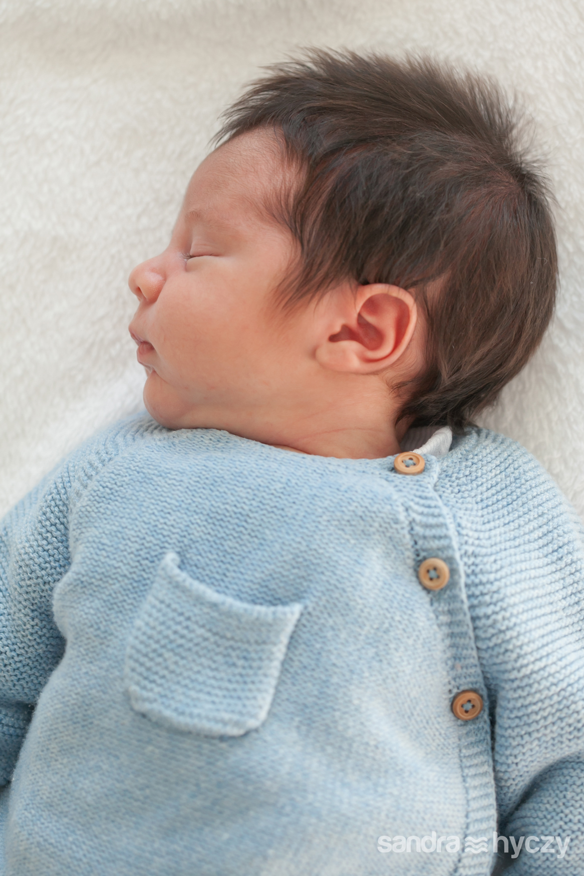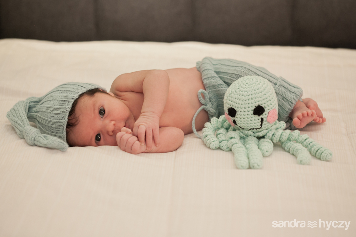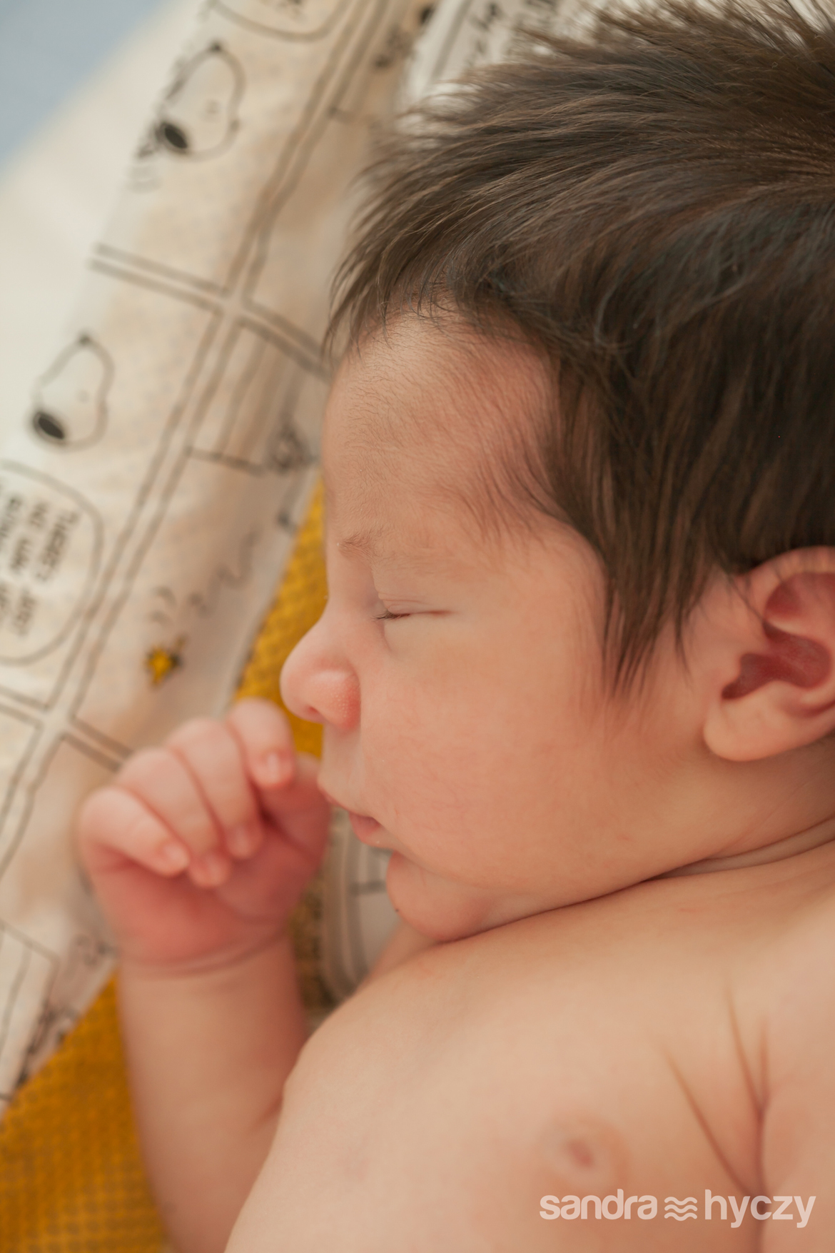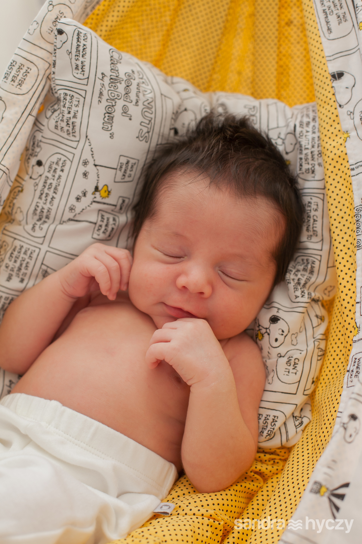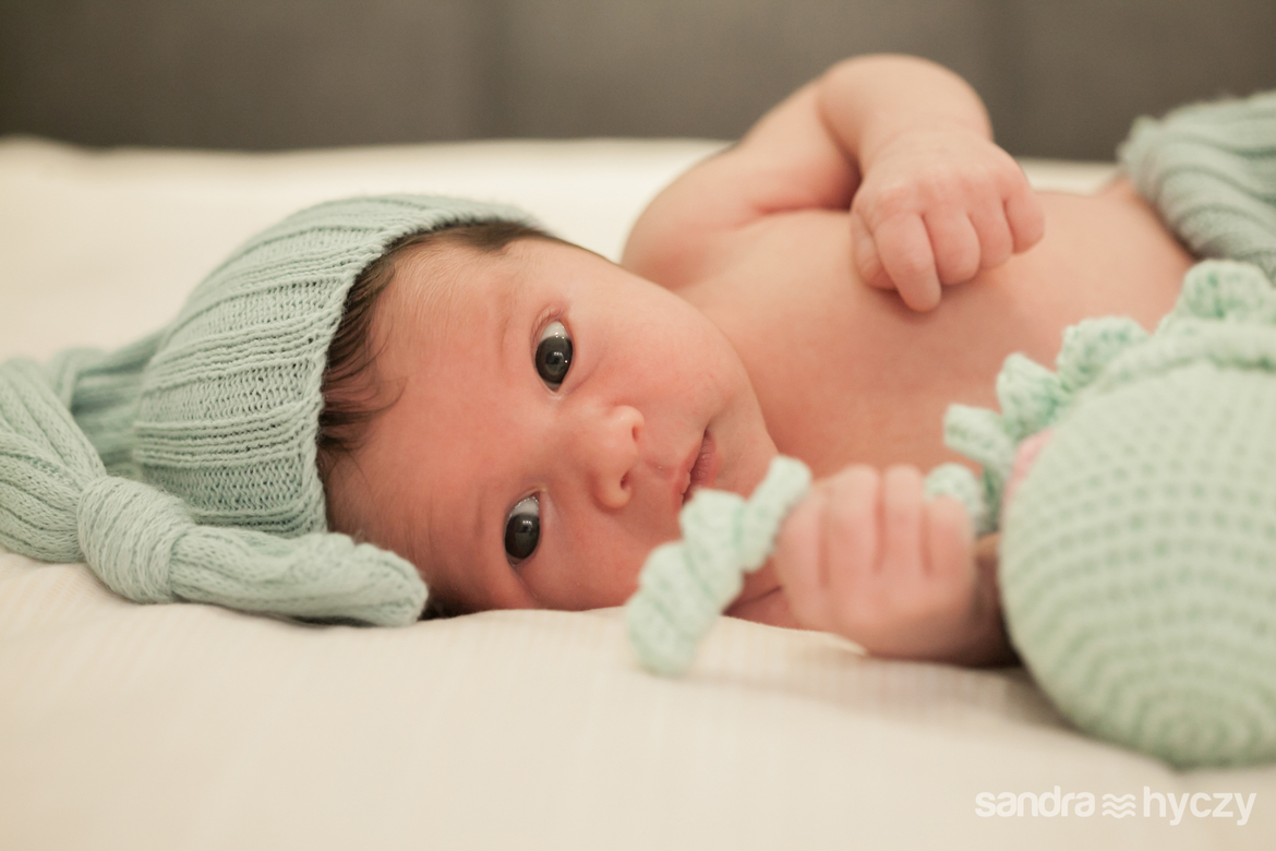 Quando iniciei a sua sessão Newborn, ele estava assim : relaxado - após um mamá gostoso, tirando uma bela soneca.